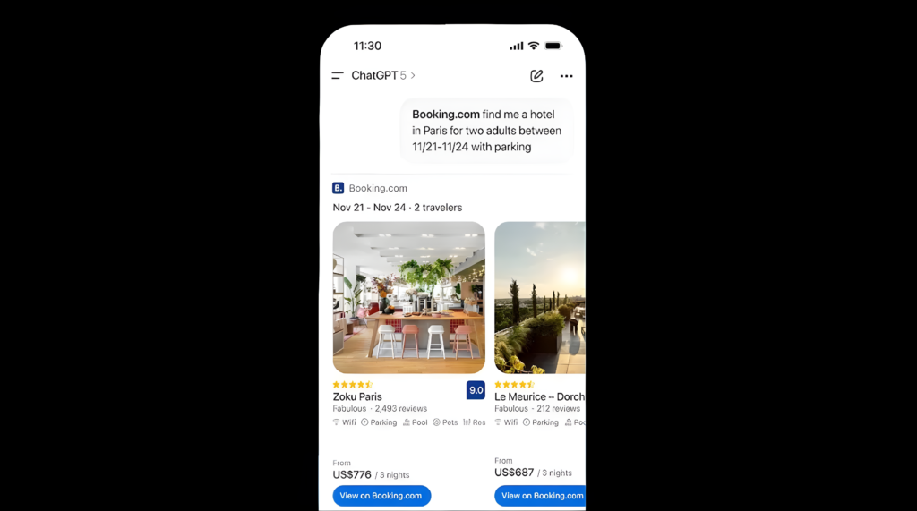 The experience is designed to feel more conversational and intuitive than browsing directly on the Booking.com website. You can even include specific requests like “breakfast included” to narrow down options. Once you find a hotel that suits your needs, you can open the Booking.com listing and complete your reservation seamlessly.